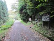 すぐに2度目の分かれ道 8時06分 真っ直ぐ行くと俳優の榎木孝明美術館がある。 大船林道の標識通り、ここを左に進む。細い一本道を行くと吉部の登山口に突き当たる。