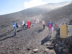 | 1、御殿場駅〜 2、須走口五合目登山口 8時58分〜 3、胸突江戸屋(本8合目)宿泊 〜 4、御来光 5時15分 〜 5、お鉢巡り 〜 6、剣ヶ峰 〜 7、須走りルート 砂走り 下山道 〜 8、砂払い五合目 〜 9、須走口五合目登山口 10時22分 〜 10、御殿場駅 |