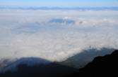 下を見ると、朝日に照らされた富士山の影が映っていた。朝日の「影富士」である。