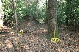 7、満干谷集落跡(作業小屋) 11時00分 この一帯が満干谷集落跡になる |