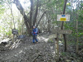 12、ホッテ谷分かれ 13時31分 山頂を目指す際、このホッテ谷分かれからどちらに進んでも福智山山頂に通じている。 安心する表示 |