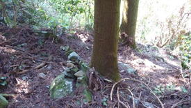 尾根の途中で、先行していた3人の登山者が休憩をしていた。挨拶を交わし私が先行することになった。疲れも知らず、40分程快適な尾根歩きが続く。この尾根は本当に気持ちがいい。知る人ぞ知る絶好の尾根歩きスポットだ。他の登山者も殆どいないので、森を一人占めした気分になって山歩きに浸れる空間でもある。但し、途中一か所だけ難所がある。 |