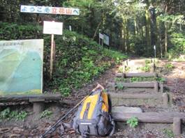 登山口への看板 7時10分 すぐに登山口への表示が。まっすぐミカン畑の横を歩くと、登山口が見えてきた。