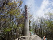 ブナ林 12時10分 県内におけるブナは気温の低い標高約1000m以上に生育する大変貴重な樹木です。中岳から北岳一帯に広がるブナ林は、西日本有数の美林で、その林床をクマイザサが埋めているのが特徴です。1991年(平成3年)の大型台風により大きな被害を受け、その存続が危ぶまれています。現在、ブナ林再生のための活動が行われています。(説明看板より) |
