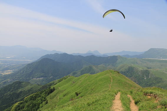 桶ヶ辻の山頂で暫くパラグライダー見学を楽しんで先へと進んだ |