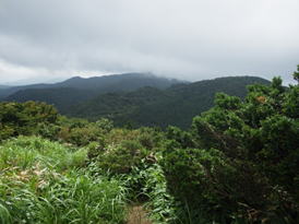 山頂は雲の中 8時16分 もうすぐ山頂なのだが、雲に覆われて視界が利かない。残念だが仕方ない。 カキラン |