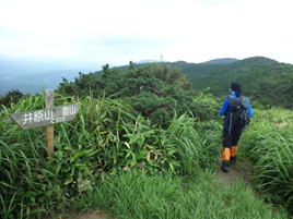 | 雷山山頂から井原山を望む 10時40分 中央の一番奥に見えるのが井原山 |