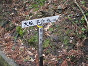 5、大船林道に飛び出す 10時20分 看板の横の道から飛び出て右へ進む。 |