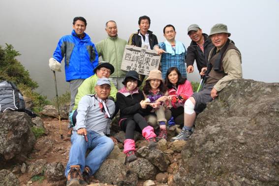 4、東峰山頂で記念撮影 1584m バンザーイ 13時23分