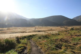 法華院温泉山荘を出発 12時48分 スガモリコースで、法華院温泉〜北千里浜〜スガモリ峠〜長者原のルートで下山する。 |