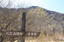 ![]() 看板の左が稲星越、右に進むと鳴子山 |
